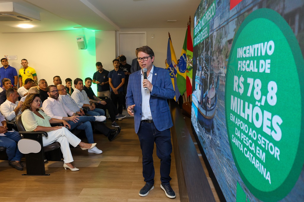 Os detalhes da medida estão na Portaria SEF 006/2026, assinada pelo governador Jorginho Mello na tarde desta quinta-feira, 5, em ato conjunto com os secretários Cleverson Siewert (Fazenda) e Tiago Bolan Frigo (Aquicultura e Pesca), no Sindicato dos Armadores e das Indústrias da Pesca de Itajaí e Região (SINDIPI), em Itajaí. Também estiveram presentes pescadores e representantes de entidades do setor pesqueiro catarinense.