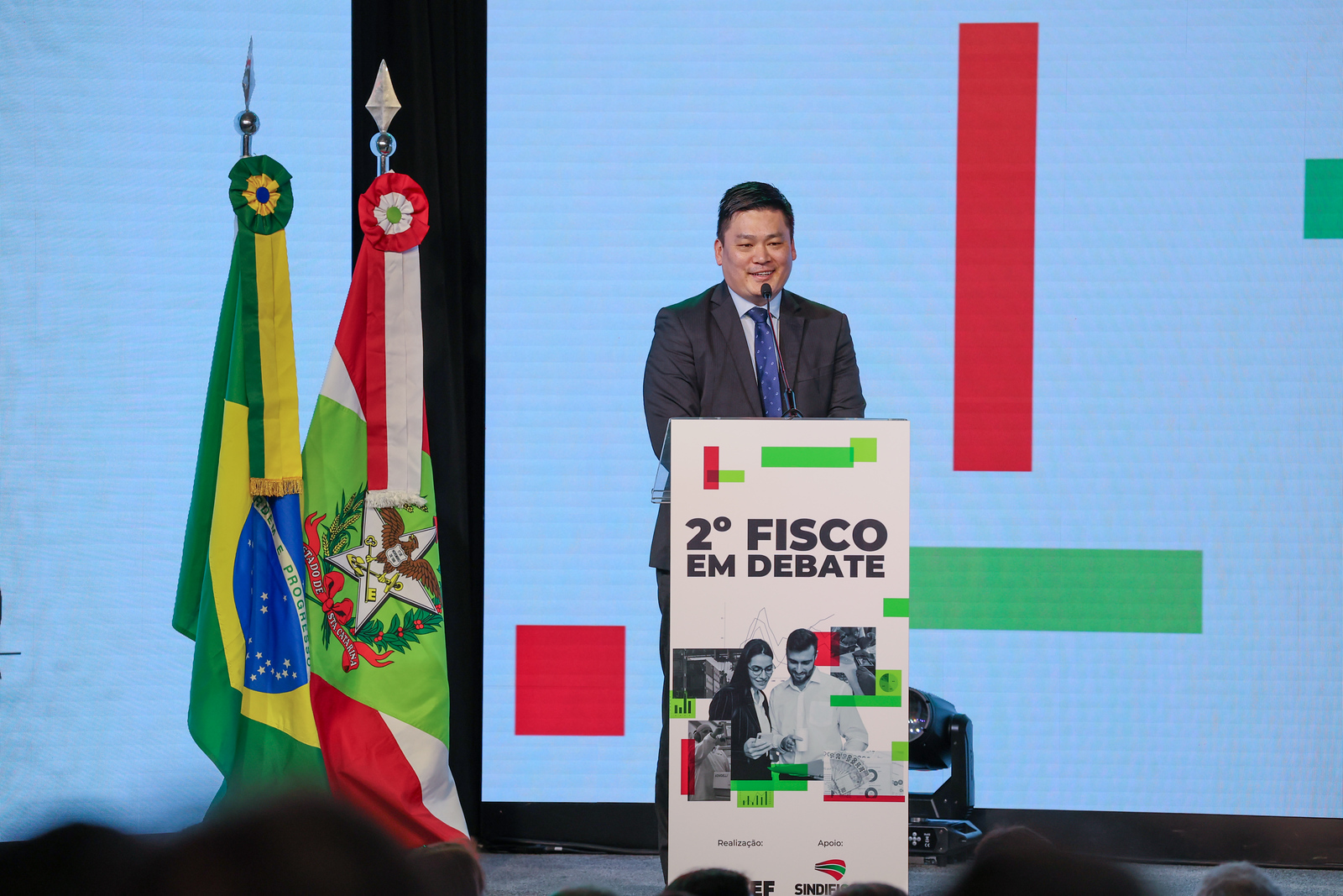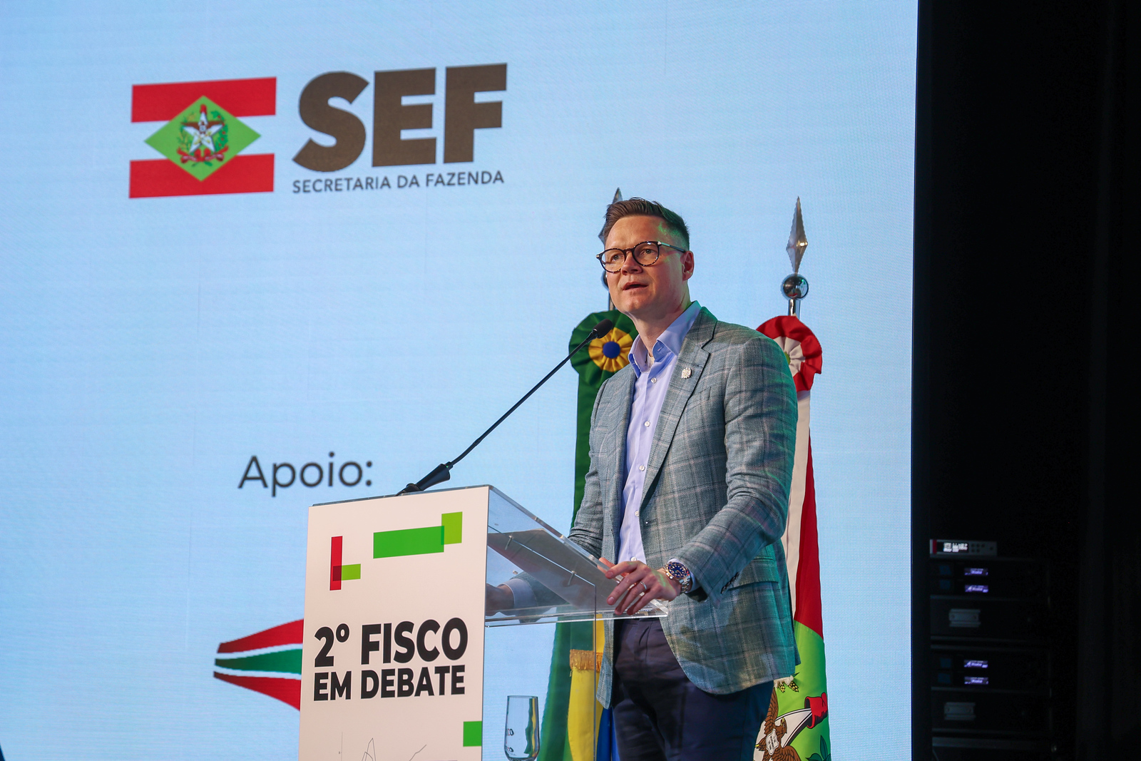 Com o tema "A Força da Arrecadação no Desenvolvimento de Projetos Estruturantes em SC", o painel apresentado pelo secretário Cleverson Siewert demonstrou que a geração de emprego e renda é um dos pilares de gestão do governador Jorginho Mello. A partir da exposição de estatísticas, indicadores e exemplos concretos, o secretário detalhou como este compromisso se notabiliza nas medidas de incentivo ao setor produtivo e nos investimentos expressivos em projetos estruturantes.