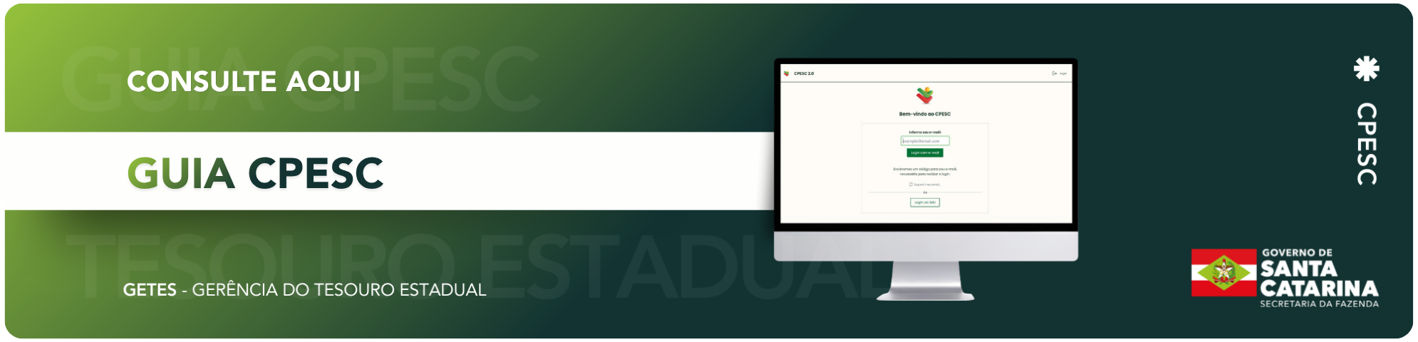 O Cartão de Pagamentos do Estado de Santa Catarina – CPESC foi instituído pelo Decreto Estadual nº 1.949, de 19 de dezembro de 2013, como um instrumento moderno e transparente de execução orçamentária utilizando-se do regime de adiantamento.