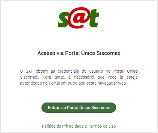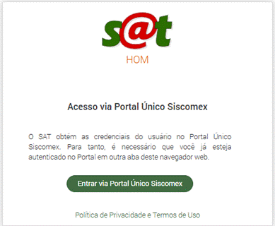 Depois de concluir o processo de login no Pucomex, volte para a aba de acesso do SLEI e clique novamente no botão “Entrar via Portal Único Siscomex”. Seu acesso será concedido.