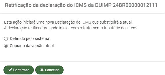 A Declaração do ICMS pode ser retificada a qualquer momento, mesmo após a entrega da carga, exceto se estiver sob análise do fisco ou a DUIMP estiver cancelada.